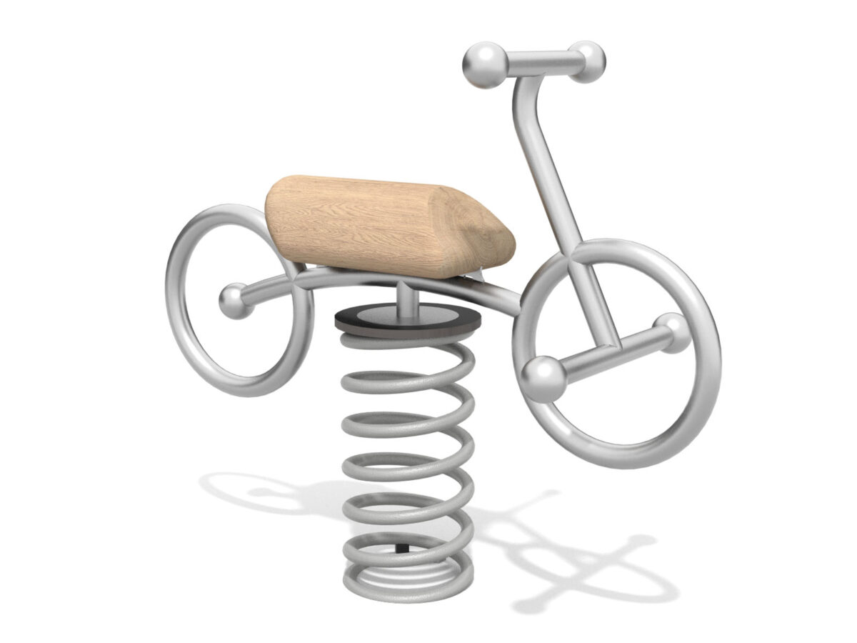 Ein junges Mädchen klettert lächelnd auf einen runden Spielplatz aus Metall und Seilen, während im Hintergrund Bäume und Grünflächen zu sehen sind.