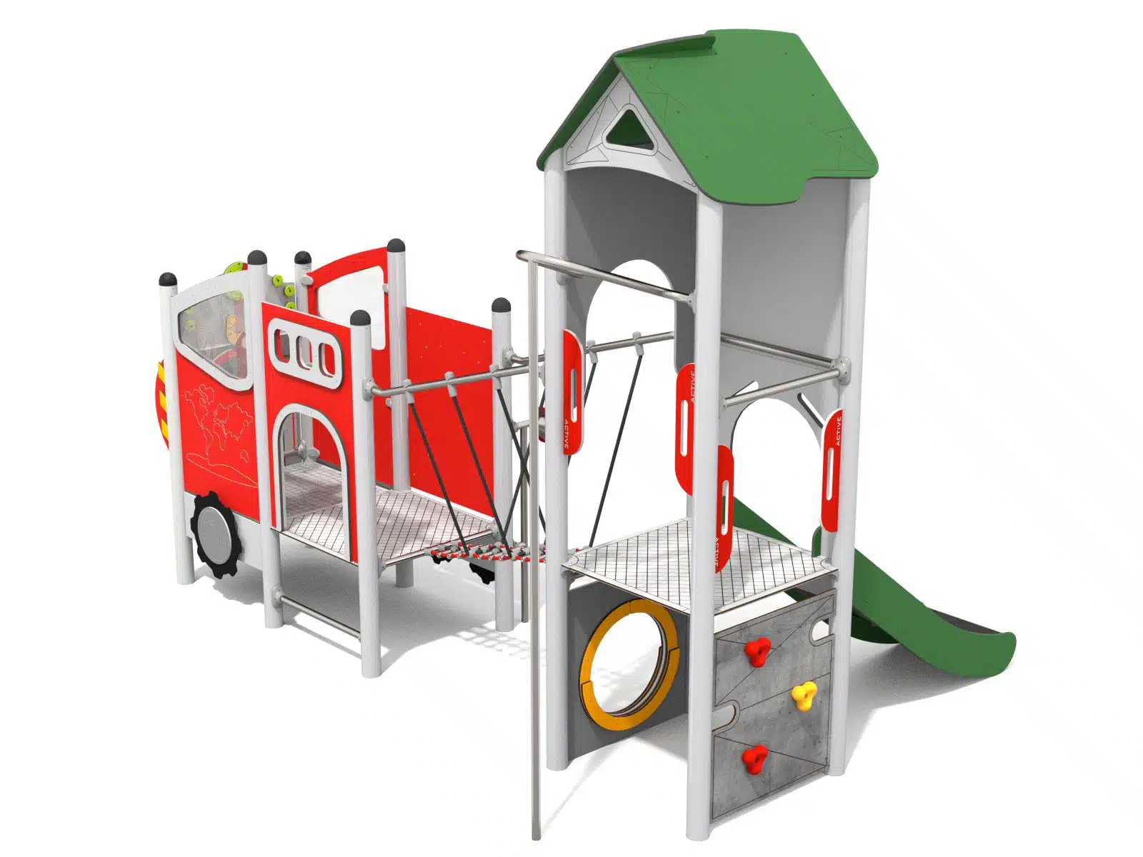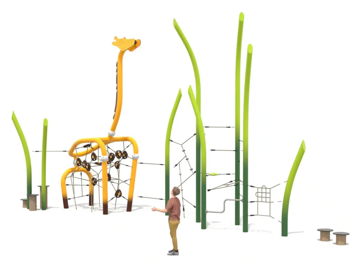 Viele Übergänge und Module sorgen für Abwechslung und lange Verweildauer. Verzinkter, pulverbeschichteter Stahl sorgt für hohe Stabilität, Schlagfestigkeit und dauerhaften Wetterschutz. Mehrere gleichzeitige Nutzungsmöglichkeiten reduzieren Wartezeiten und erhöhen den Spielwert. Geeignet für den angegebenen Altersbereich 3 – 12. Eine langlebige Lösung, die Betreuung und Unterhalt vereinfacht.
