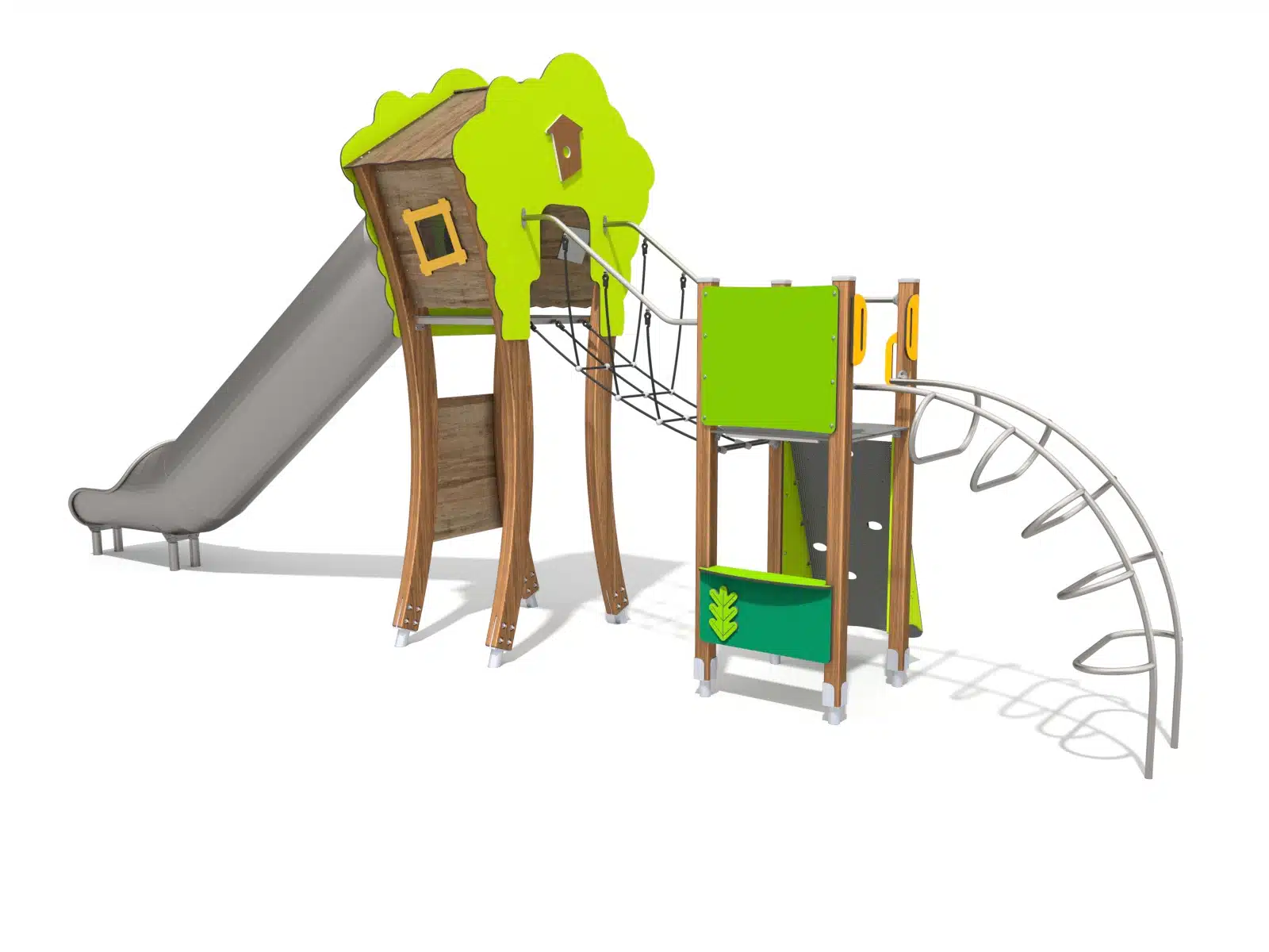 Ein vielseitiges Gerät, das Kinder zuverlässig in Aktion bringt. Verzinkter, pulverbeschichteter Stahl sorgt für hohe Stabilität, Schlagfestigkeit und dauerhaften Wetterschutz. Die Gestaltung unterstützt freies Spiel, Rollenspiel und soziale Interaktion. Geeignet für den angegebenen Altersbereich 3 – 12. Perfekt für Stadtparks, Schulhöfe und kommunale Spielplätze.