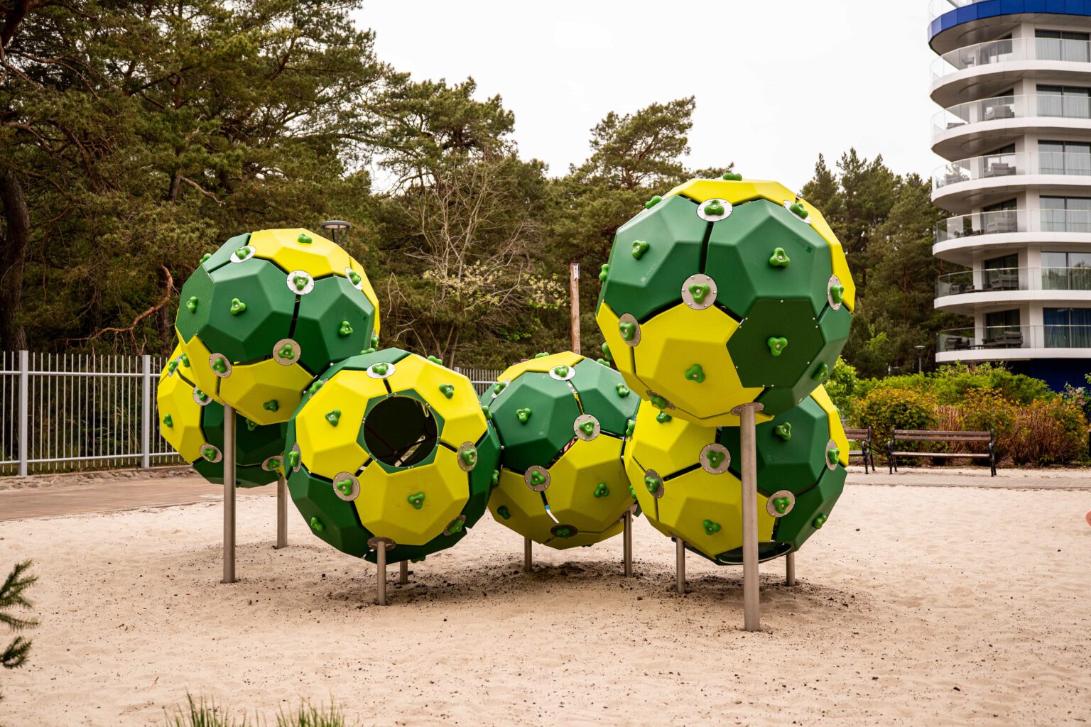 Es werden ausschließlich Materialien verwendet, die die wichtigsten Kriterien eines Spielplatzbetreibers erfüllen. Dazu zählen neben Langlebigkeit, Wartungsarmut, Widerstandsfähigkeit und Witterungsbeständigkeit auch der vielfältige Spielwert.