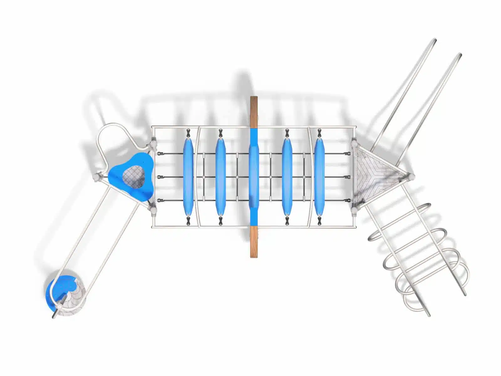 Die Kletteranlage bietet vielfältige Routen und fördert Körperkraft und Geschick. Verzinkter, pulverbeschichteter Stahl sorgt für hohe Stabilität, Schlagfestigkeit und dauerhaften Wetterschutz. Die Gestaltung unterstützt freies Spiel, Rollenspiel und soziale Interaktion. Geeignet für den angegebenen Altersbereich 3 – 12. Perfekt für Stadtparks, Schulhöfe und kommunale Spielplätze.