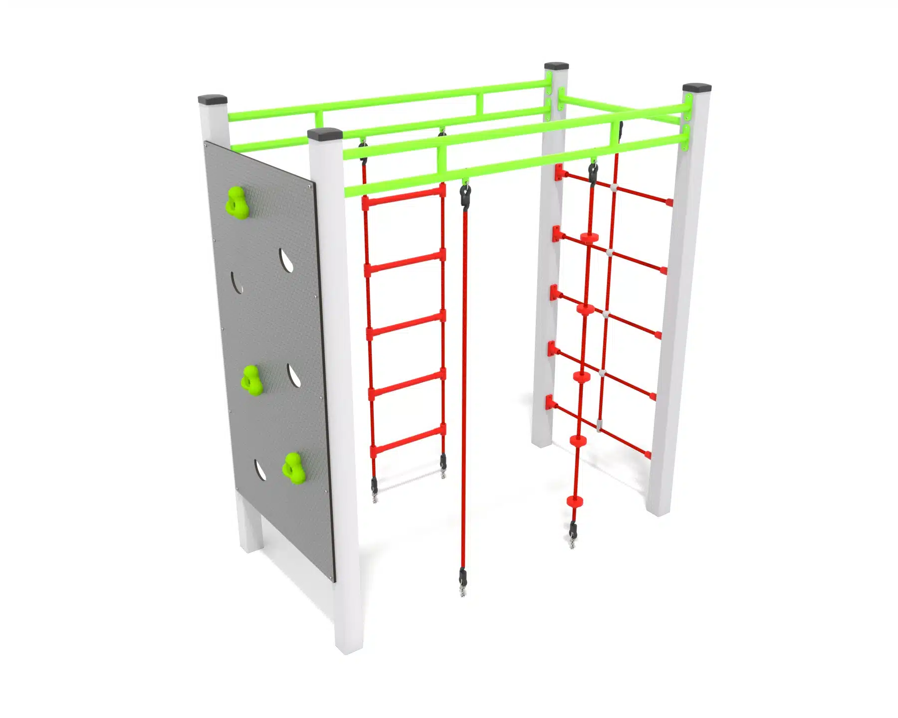 Ein Gerät für aktive Entdecker, das immer neue Ziele setzt. Verzinkter, pulverbeschichteter Stahl sorgt für hohe Stabilität, Schlagfestigkeit und dauerhaften Wetterschutz. Fließende Abläufe motivieren zu wiederholtem Spielen und wachsender Herausforderung. Geeignet für den angegebenen Altersbereich 3 – 12. Ideal für öffentliche Anlagen mit hoher Frequentierung.