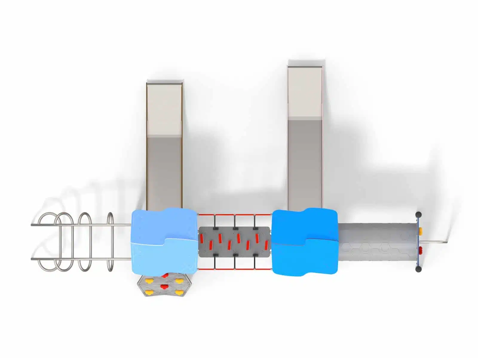 Hangeln, balancieren, hoch hinaus – die Kletterkombination bietet Abwechslung. Verzinkter, pulverbeschichteter Stahl sorgt für hohe Stabilität, Schlagfestigkeit und dauerhaften Wetterschutz. Die Gestaltung unterstützt freies Spiel, Rollenspiel und soziale Interaktion. Geeignet für den angegebenen Altersbereich 3 – 12. Perfekt für Stadtparks, Schulhöfe und kommunale Spielplätze.