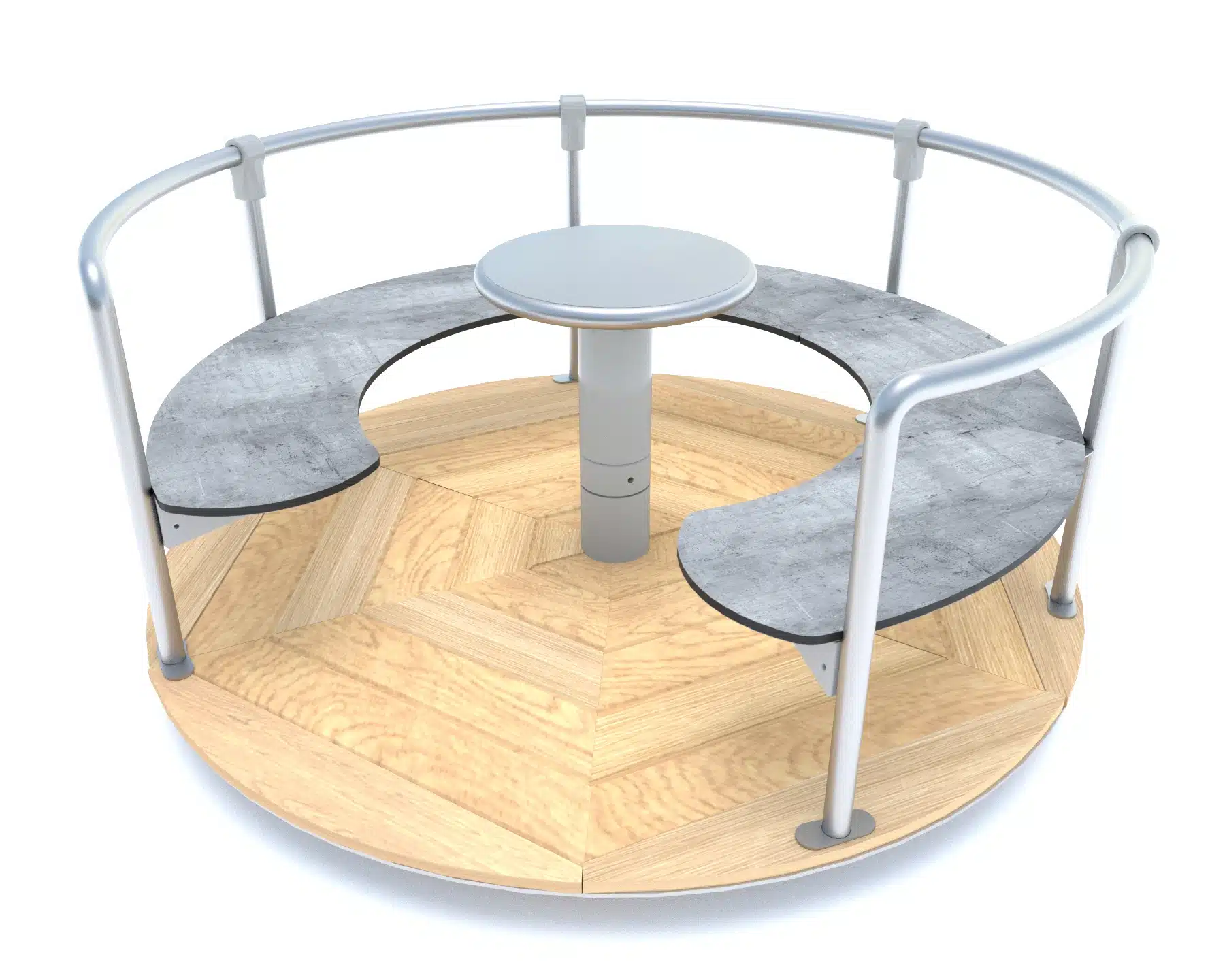 Dieses Karussell sorgt mit dynamischer Drehbewegung für gemeinsames Spielvergnügen. Verzinkter, pulverbeschichteter Stahl sorgt für hohe Stabilität, Schlagfestigkeit und dauerhaften Wetterschutz. Fließende Abläufe motivieren zu wiederholtem Spielen und wachsender Herausforderung. Geeignet für den angegebenen Altersbereich 3 – 12. Setzt einen starken Akzent und wertet jede Spielfläche sichtbar auf.