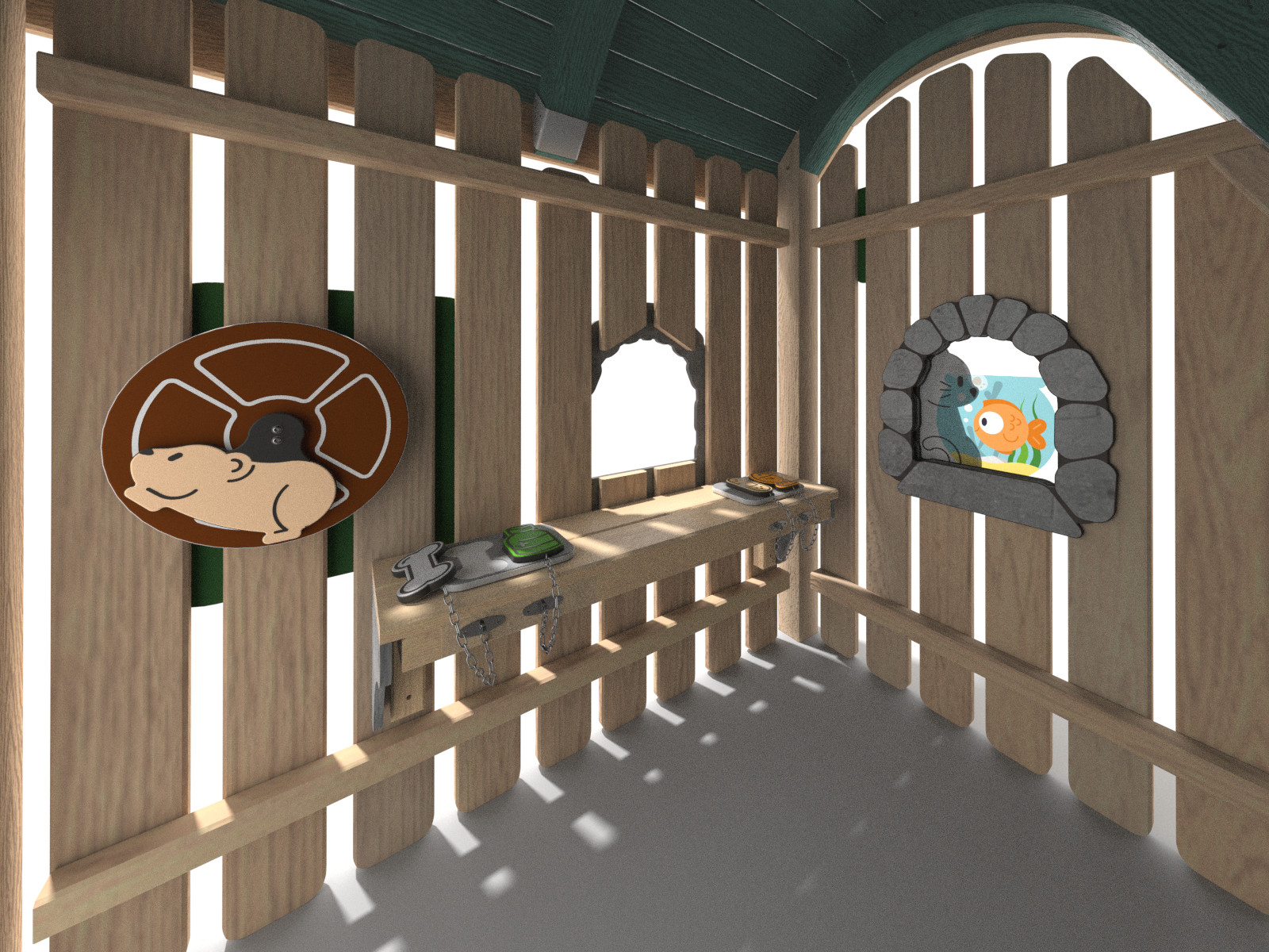 Es werden ausschließlich Materialien verwendet, die die wichtigsten Kriterien eines Spielplatzbetreibers erfüllen. Dazu zählen neben Langlebigkeit, Wartungsarmut, Widerstandsfähigkeit und Witterungsbeständigkeit auch der vielfältige Spielwert.