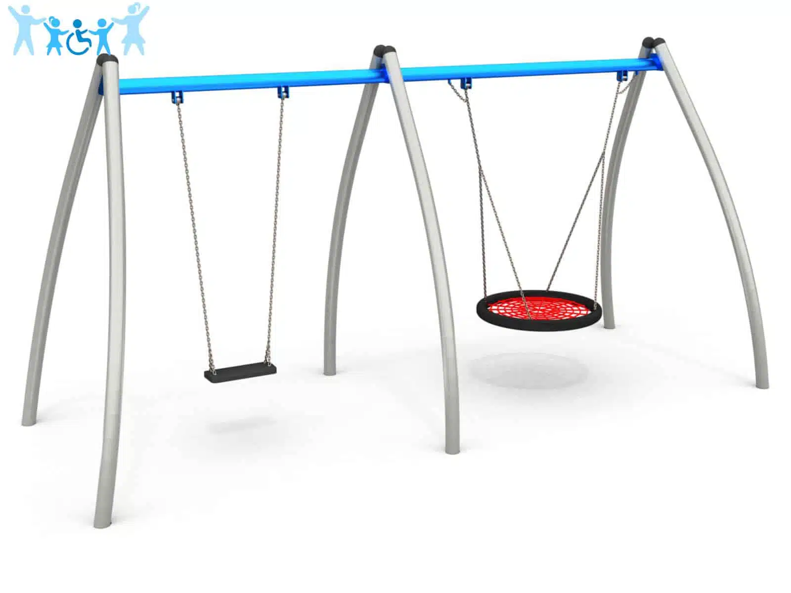 Gemeinsam Höhe gewinnen: Die Doppelschaukel ist ein Dauerbrenner auf jedem Platz. Verzinkter, pulverbeschichteter Stahl sorgt für hohe Stabilität, Schlagfestigkeit und dauerhaften Wetterschutz. Durchdachte Spielwege fördern Motorik, Koordination und Körpergefühl. Barrierearme Gestaltung fördert gemeinsames Spielen und ermöglicht vielfältige Nutzung für alle Kinder. Geeignet für den angegebenen Altersbereich 3 – 12. Ideal für öffentliche Anlagen mit hoher Frequentierung.