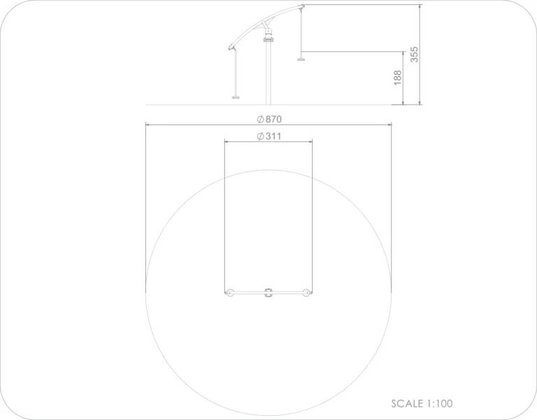 - Abmessungen des Gerätes L x H x B: 3,11 x 3,55 x 3,11 m