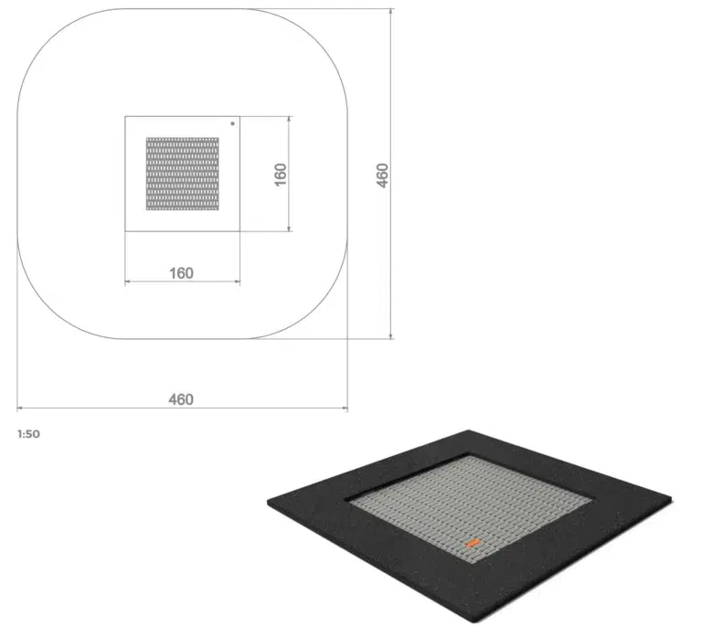 • Abmessungen des Gerätes L x H x B: 1,60 x 0,00 x 1,60 m