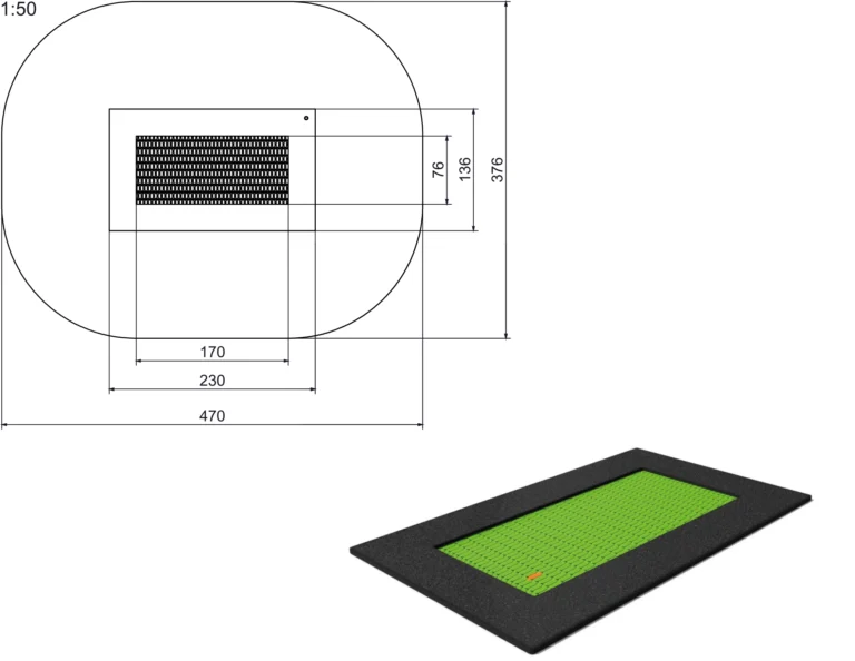 - min. Sicherheitsbereich: 3,76 x 4,70 m