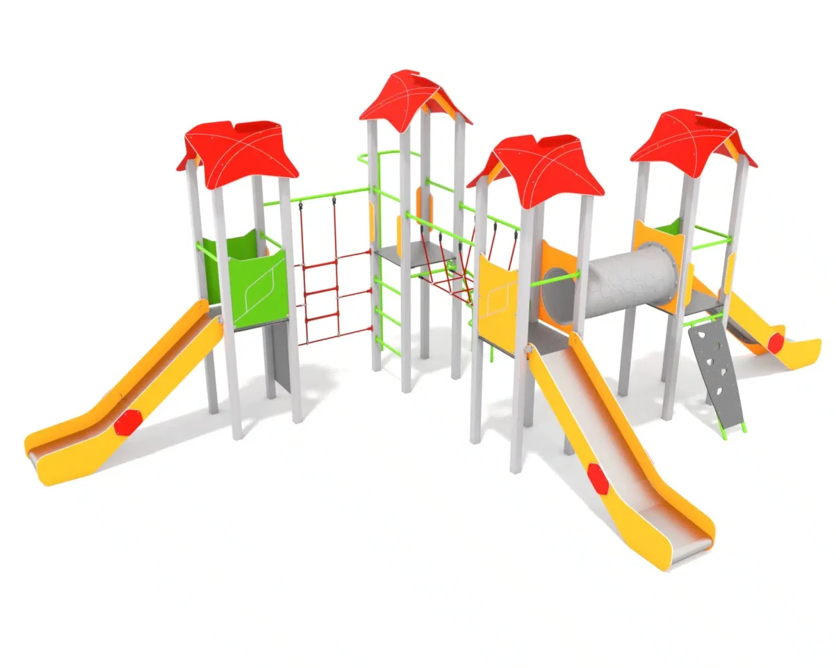 Ein vielseitiges Gerät, das Kinder zuverlässig in Aktion bringt. Verzinkter, pulverbeschichteter Stahl sorgt für hohe Stabilität, Schlagfestigkeit und dauerhaften Wetterschutz. Mehrere gleichzeitige Nutzungsmöglichkeiten reduzieren Wartezeiten und erhöhen den Spielwert. Geeignet für den angegebenen Altersbereich nan. Eine langlebige Lösung, die Betreuung und Unterhalt vereinfacht.