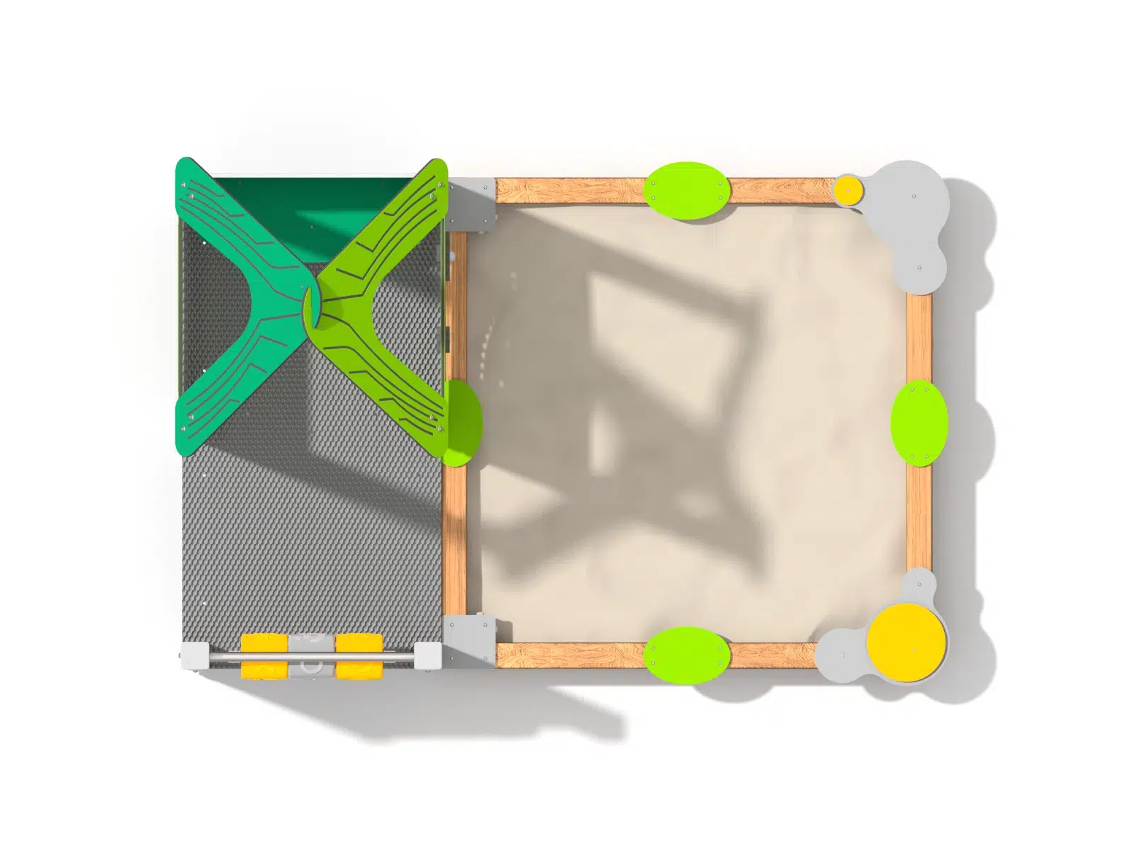 Es werden ausschließlich Materialien verwendet, die die wichtigsten Kriterien eines Spielplatzbetreibers erfüllen. Dazu zählen neben Langlebigkeit, Wartungsarmut, Widerstandsfähigkeit und Witterungsbeständigkeit auch der vielfältige Spielwert.