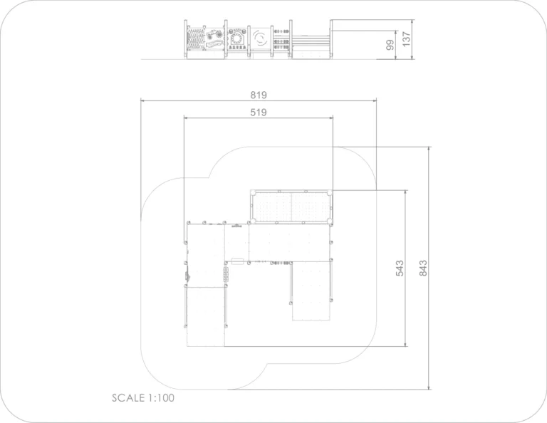 • Abmessungen des Gerätes L x H x B: 5,43 x 1,37 x 5,19 m
