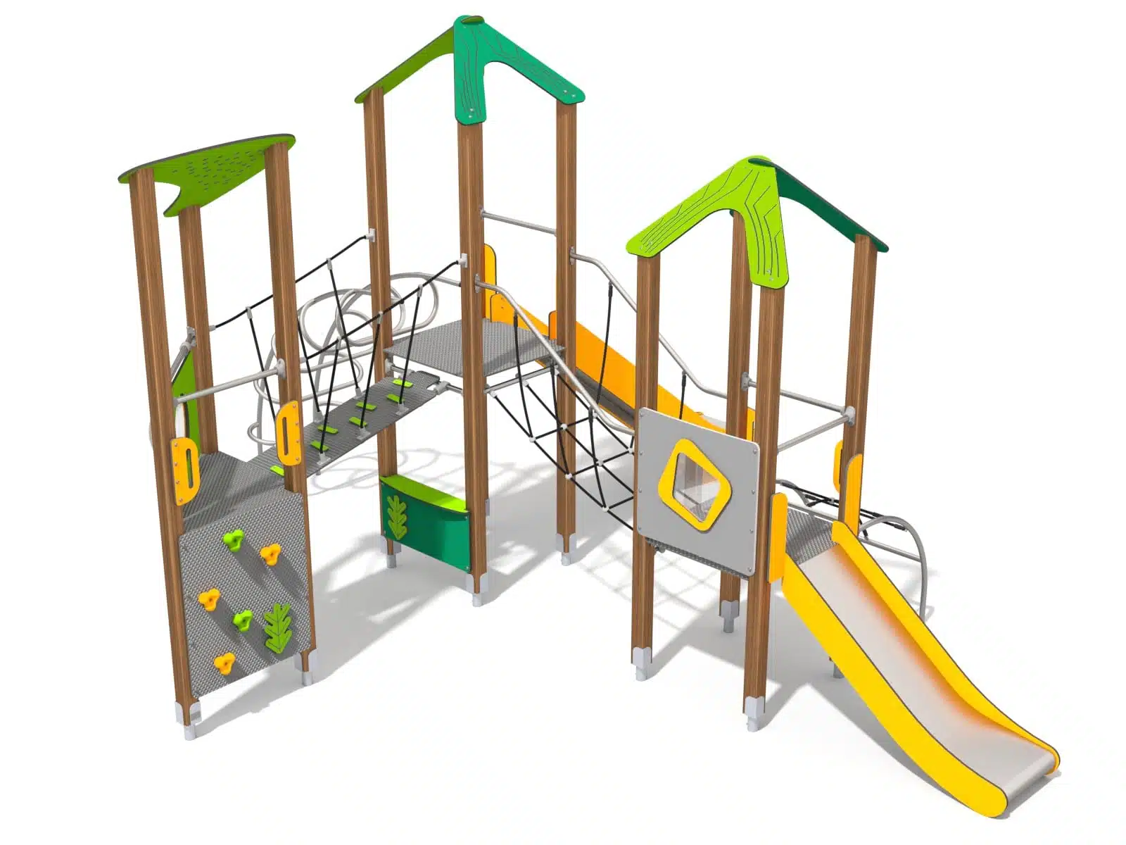 Viele Übergänge und Module sorgen für Abwechslung und lange Verweildauer. Hochwertige, witterungsbeständige Materialien garantieren Sicherheit, Langlebigkeit und geringe Wartung. Durchdachte Spielwege fördern Motorik, Koordination und Körpergefühl. Geeignet für den angegebenen Altersbereich 3 – 12. Eine langlebige Lösung, die Betreuung und Unterhalt vereinfacht.