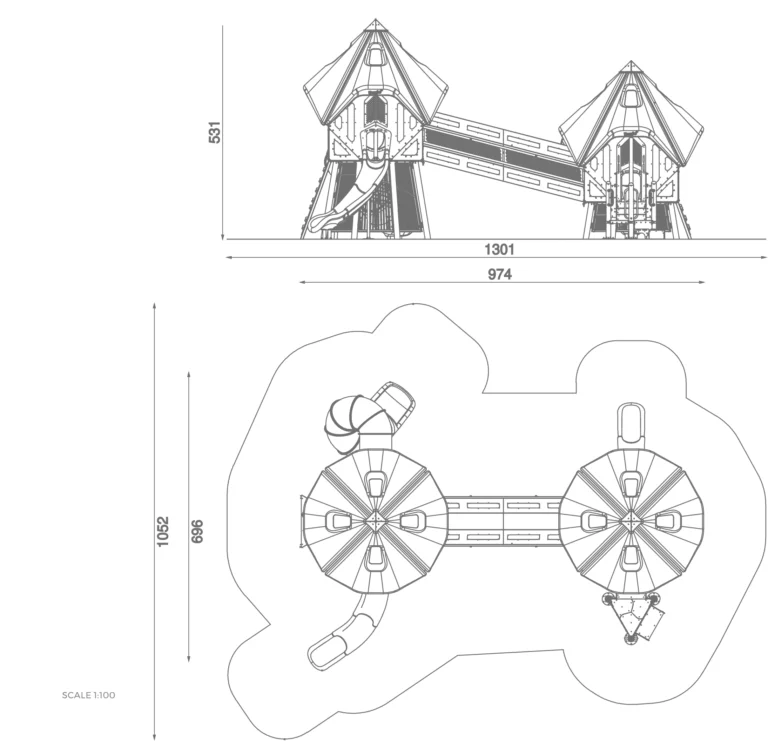 Kombinierte Spielwege schaffen fließende Bewegung und gemeinsames Erleben. Verzinkter, pulverbeschichteter Stahl sorgt für hohe Stabilität, Schlagfestigkeit und dauerhaften Wetterschutz. Mehrere gleichzeitige Nutzungsmöglichkeiten reduzieren Wartezeiten und erhöhen den Spielwert. Geeignet für den angegebenen Altersbereich 3 – 12. Ideal für öffentliche Anlagen mit hoher Frequentierung.