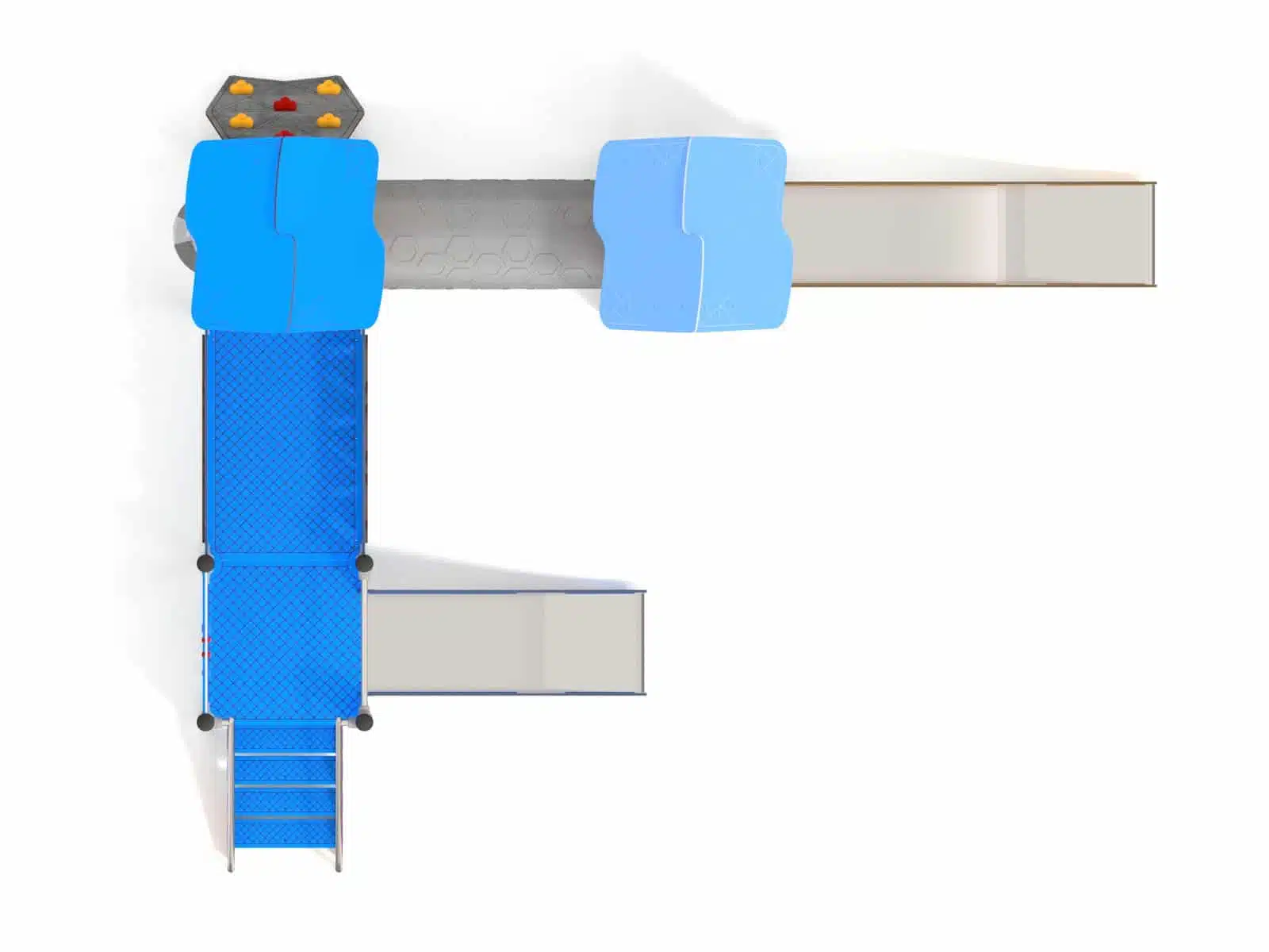 Viele Übergänge und Module sorgen für Abwechslung und lange Verweildauer. Verzinkter, pulverbeschichteter Stahl sorgt für hohe Stabilität, Schlagfestigkeit und dauerhaften Wetterschutz. Durchdachte Spielwege fördern Motorik, Koordination und Körpergefühl. Geeignet für den angegebenen Altersbereich 3 – 12. Ideal für öffentliche Anlagen mit hoher Frequentierung.