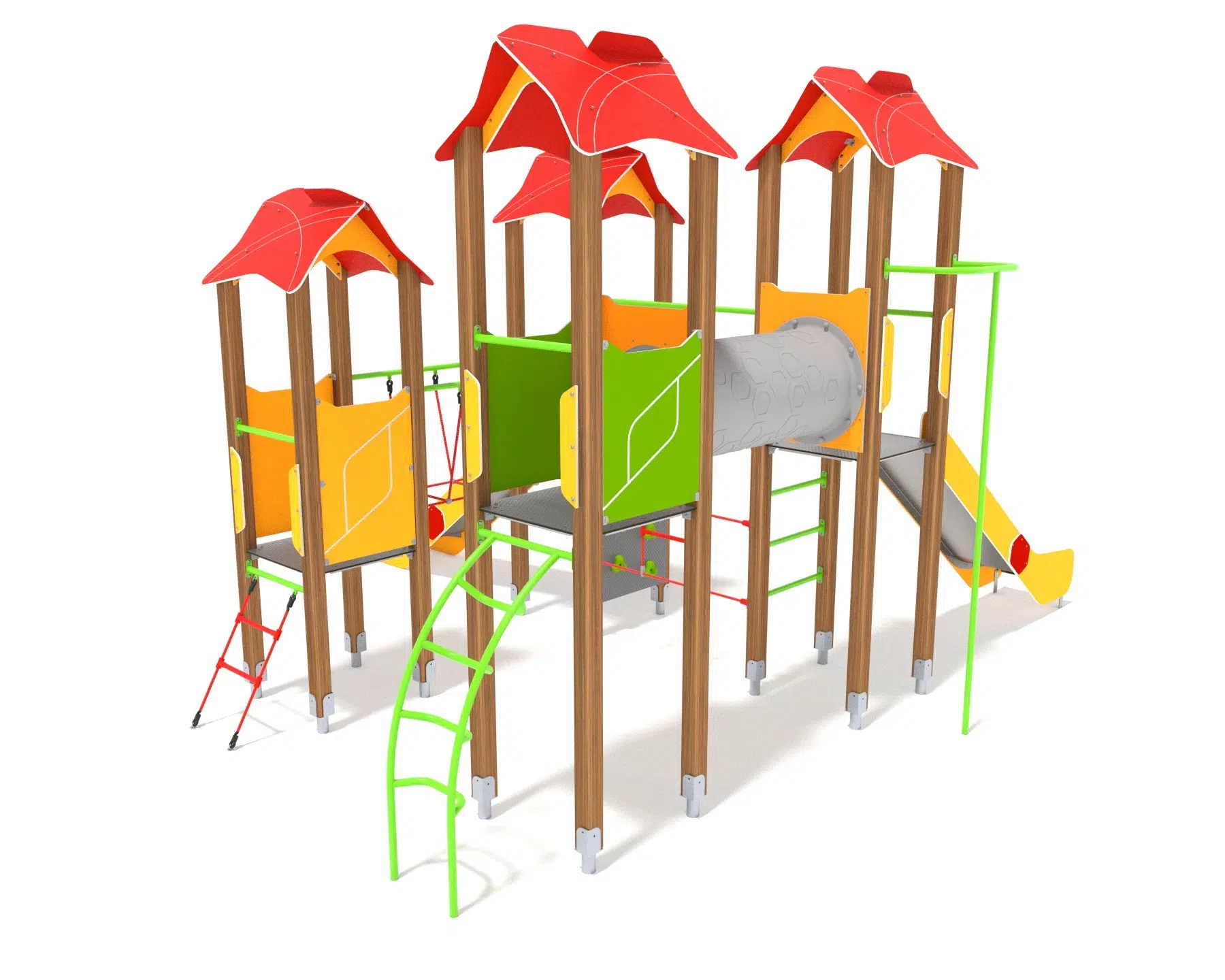Es werden ausschließlich Materialien verwendet, die die wichtigsten Kriterien eines Spielplatzbetreibers erfüllen. Dazu zählen neben Langlebigkeit, Wartungsarmut, Widerstandsfähigkeit und Witterungsbeständigkeit auch der vielfältige Spielwert.