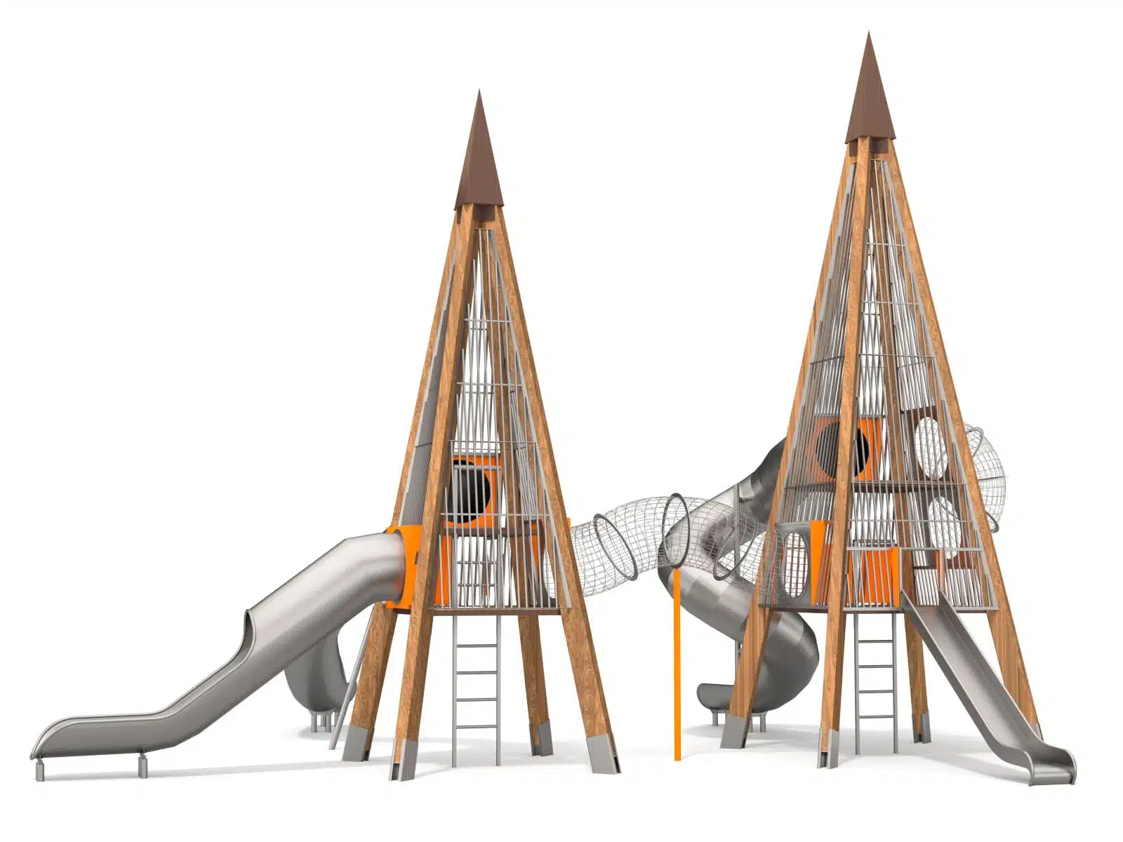Mit Brücken, Netzen und Plattformen lädt der Spielturm zu immer neuen Wegen ein. Verzinkter, pulverbeschichteter Stahl sorgt für hohe Stabilität, Schlagfestigkeit und dauerhaften Wetterschutz. Fließende Abläufe motivieren zu wiederholtem Spielen und wachsender Herausforderung. Geeignet für den angegebenen Altersbereich 3 – 12. Eine langlebige Lösung, die Betreuung und Unterhalt vereinfacht.