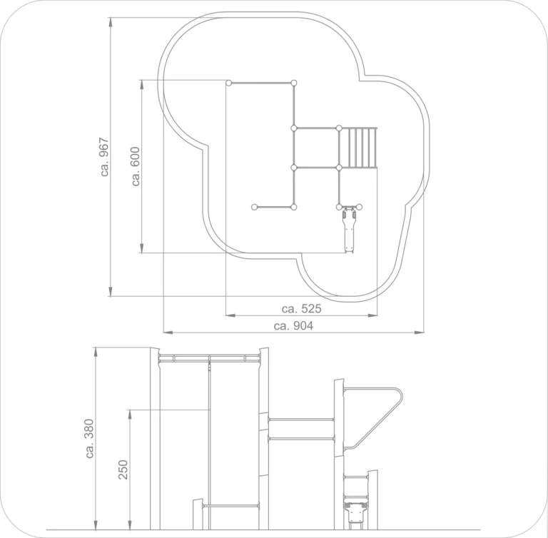 • min. Sicherheitsbereich: 9,67 x 9,04m
