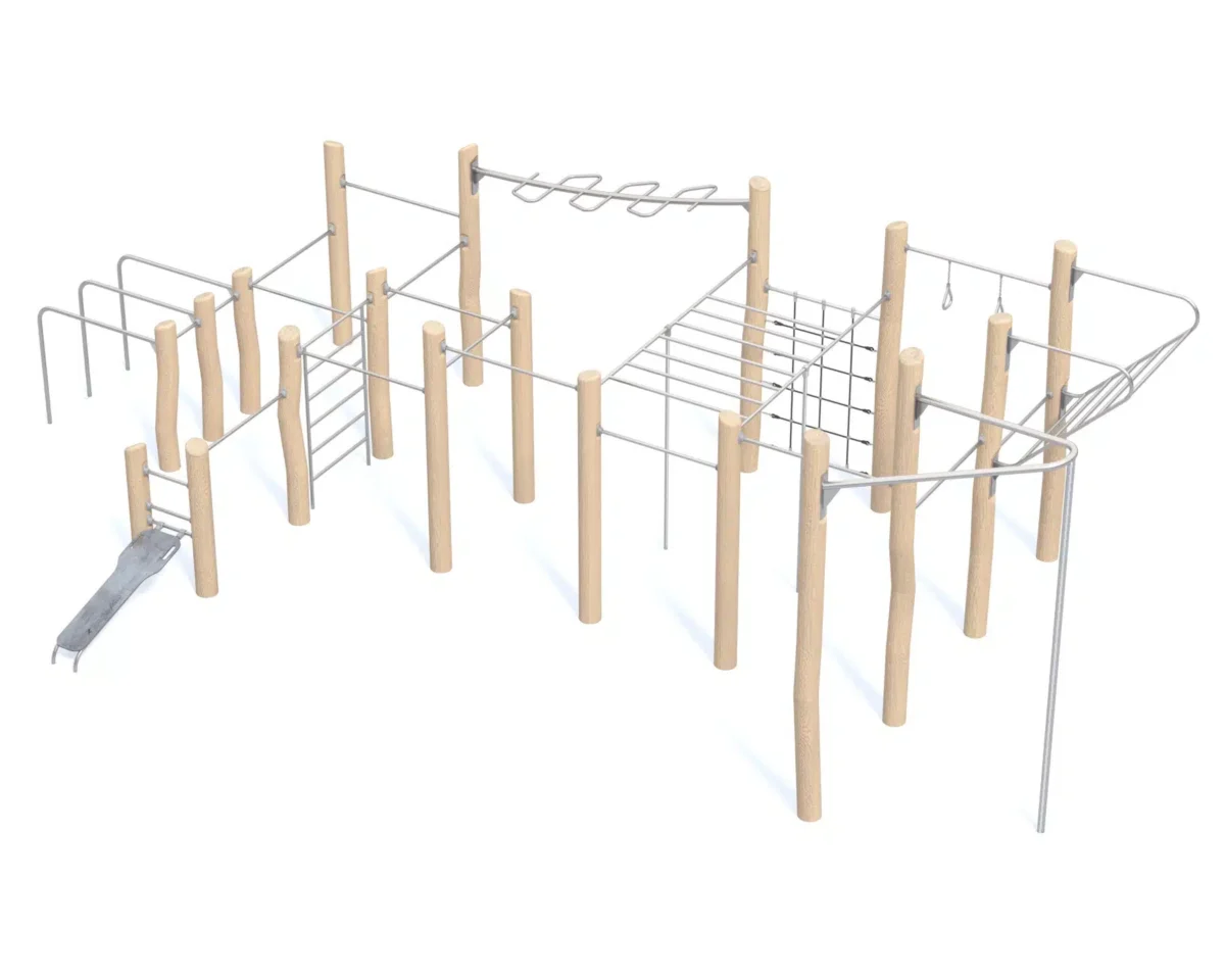 Netze, Griffe und Stege schaffen abwechslungsreiche Kletterwege. Verzinkter, pulverbeschichteter Stahl sorgt für hohe Stabilität, Schlagfestigkeit und dauerhaften Wetterschutz. Die Gestaltung unterstützt freies Spiel, Rollenspiel und soziale Interaktion. Geeignet für den angegebenen Altersbereich 3 – 12. Setzt einen starken Akzent und wertet jede Spielfläche sichtbar auf.