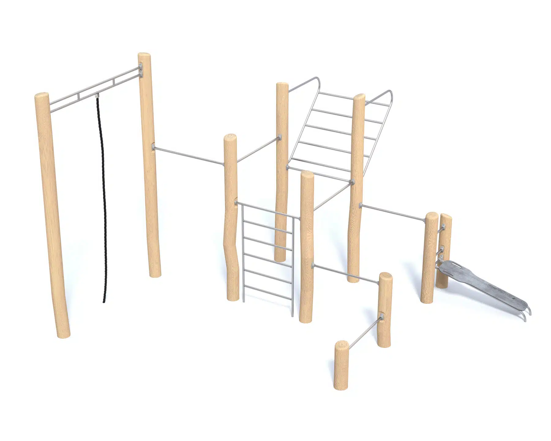 Abwechslungsreiche Nutzung fördert Motorik, Mut und Fantasie. Verzinkter, pulverbeschichteter Stahl sorgt für hohe Stabilität, Schlagfestigkeit und dauerhaften Wetterschutz. Die Gestaltung unterstützt freies Spiel, Rollenspiel und soziale Interaktion. Geeignet für den angegebenen Altersbereich 3 – 12. Ideal für öffentliche Anlagen mit hoher Frequentierung.