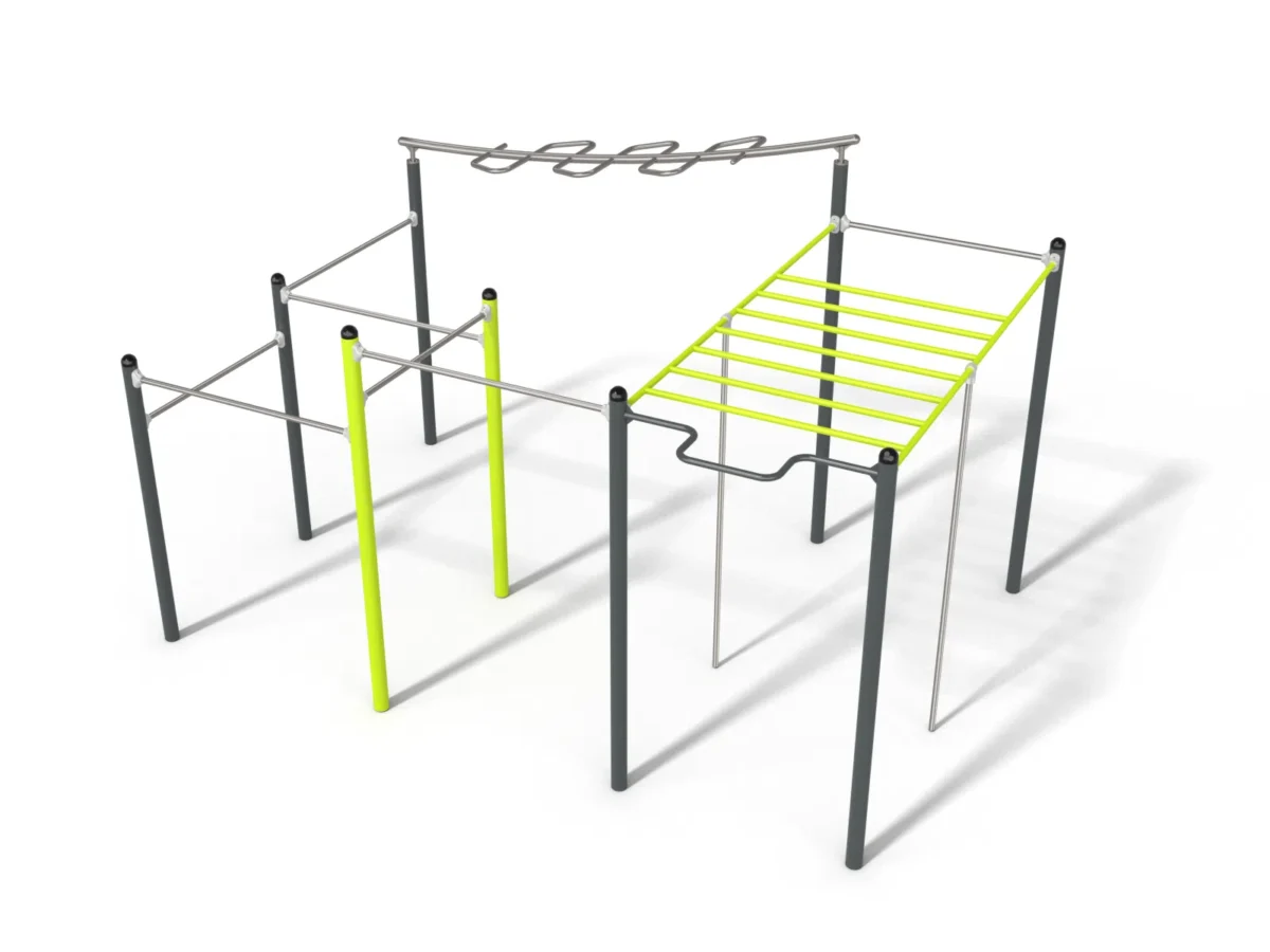 Ein Gerät für aktive Entdecker, das immer neue Ziele setzt. Verzinkter, pulverbeschichteter Stahl sorgt für hohe Stabilität, Schlagfestigkeit und dauerhaften Wetterschutz. Mehrere gleichzeitige Nutzungsmöglichkeiten reduzieren Wartezeiten und erhöhen den Spielwert. Geeignet für den angegebenen Altersbereich 3 – 12. Ideal für öffentliche Anlagen mit hoher Frequentierung.