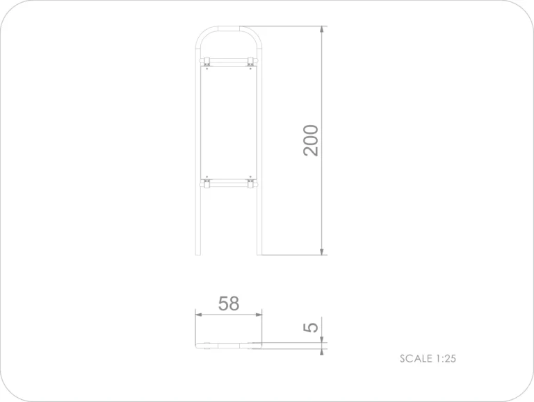 - Abmessungen des Gerätes L x H x B: 0,58 x 2,00 0,05 m