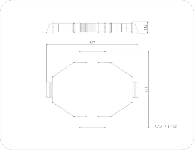 - Abmessungen des Gerätes L x H x B: 8,97 x 1,12 x 7,54 m