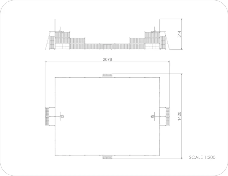 - Abmessungen des Gerätes L x H x B: 20,76 x 5,14 x 14,20 m