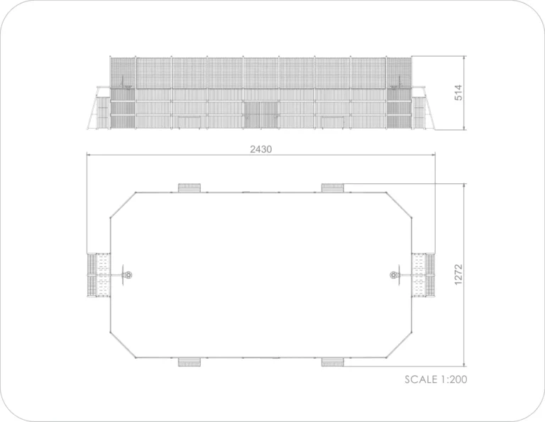 - Abmessungen des Gerätes L x H x B: 24,30 x 5,14 x 12,72 m