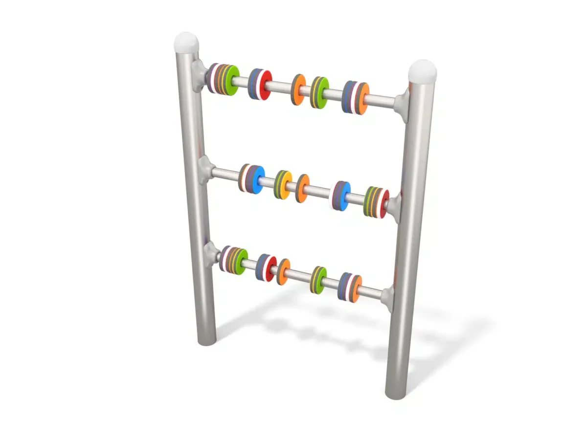 Ein junges Mädchen klettert lächelnd auf einen runden Spielplatz aus Metall und Seilen, während im Hintergrund Bäume und Grünflächen zu sehen sind.